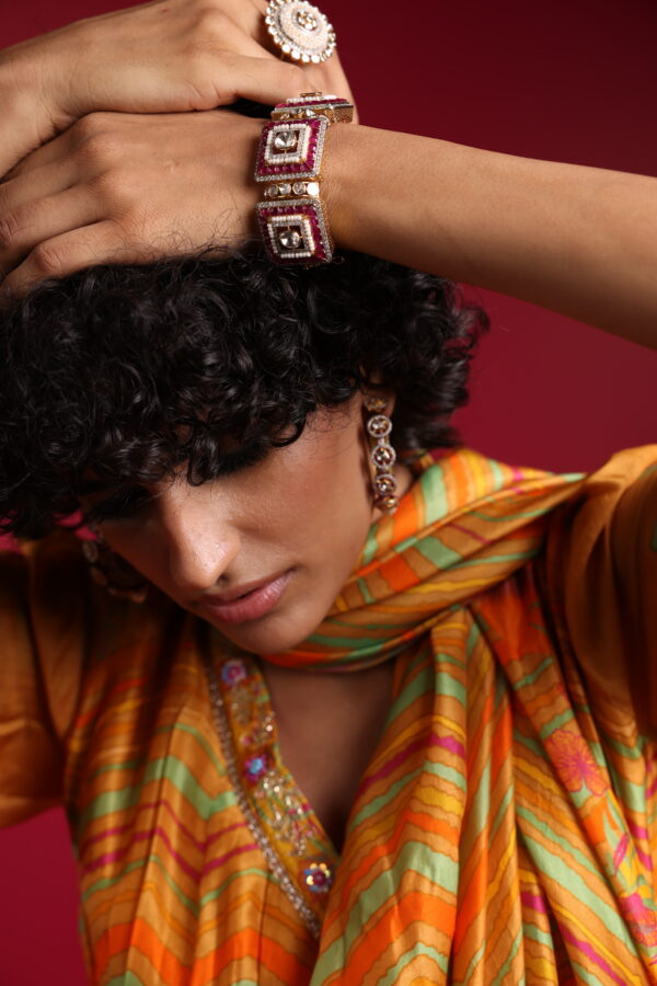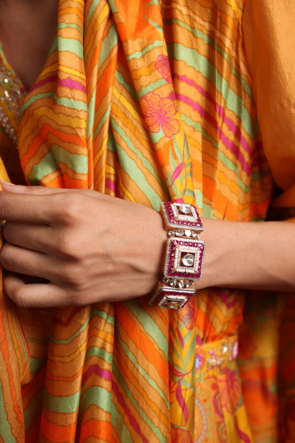 These stunning Bracelet feature a beautiful design with a classic polki diamond. A perfect addition to any jewelry collection, these 14k Gold Polki Bracelets will add an instant touch of elegance to your look.