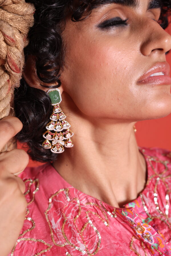 14K Gold Polki Emerald Earrings