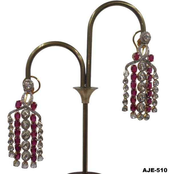 Five line Diamond Polki Chandelier Earrings