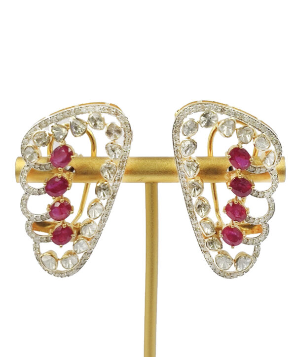 These stunning earrings feature a beautiful design with a classic polki ruby stone. A perfect addition to any jewelry collection, these 14k Gold Ruby Polki Earrings will add an instant touch of elegance to your look.